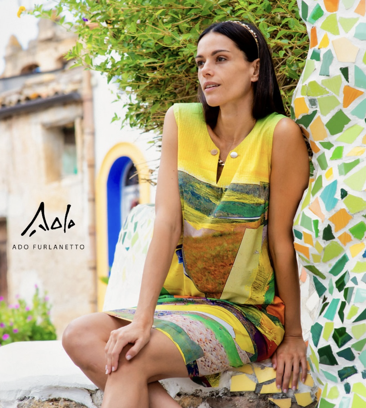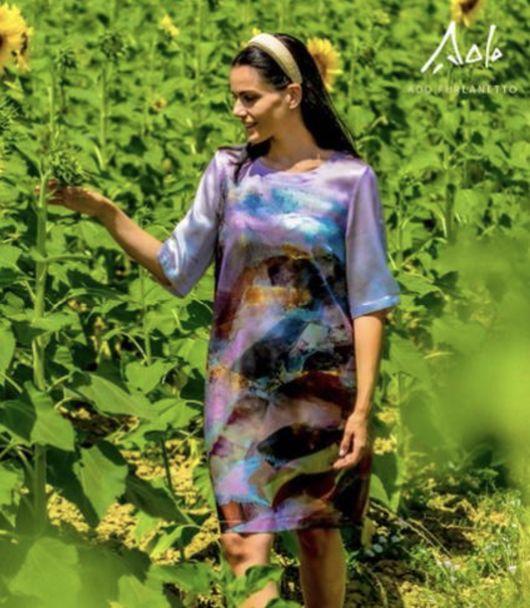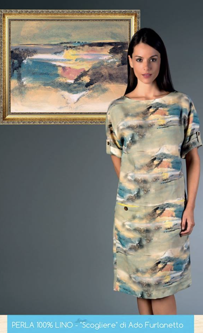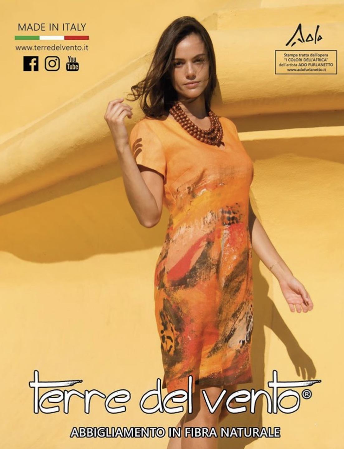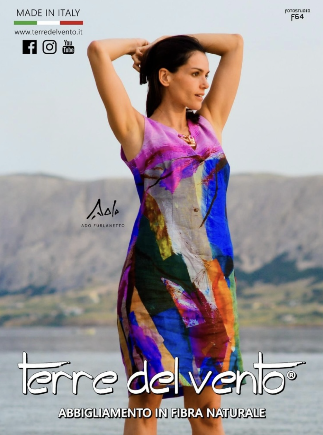 Dal 2016 Ado Furlanetto collabora con "Terre del Vento" , abbigliamento in fibra naturale, per creare stupendi abiti e pashmine per le collezioni primavera/estate e autunno/inverno con le sue opere.